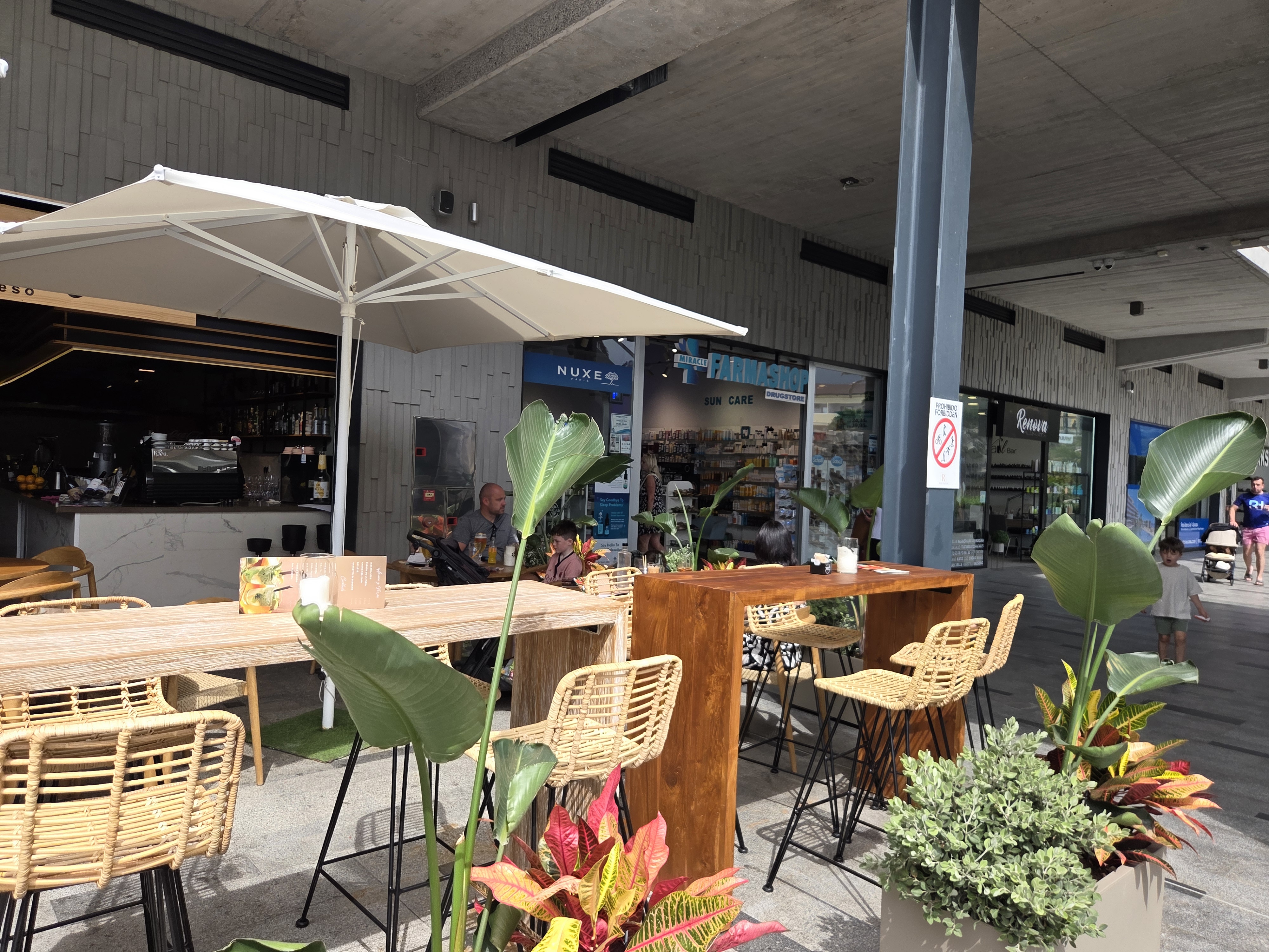 Côté restauration, on trouve des cafés modernes et des bars à cocktails. Les terrasses végétalisées offrent des coins ombragés idéaux pour une collation après la plage.