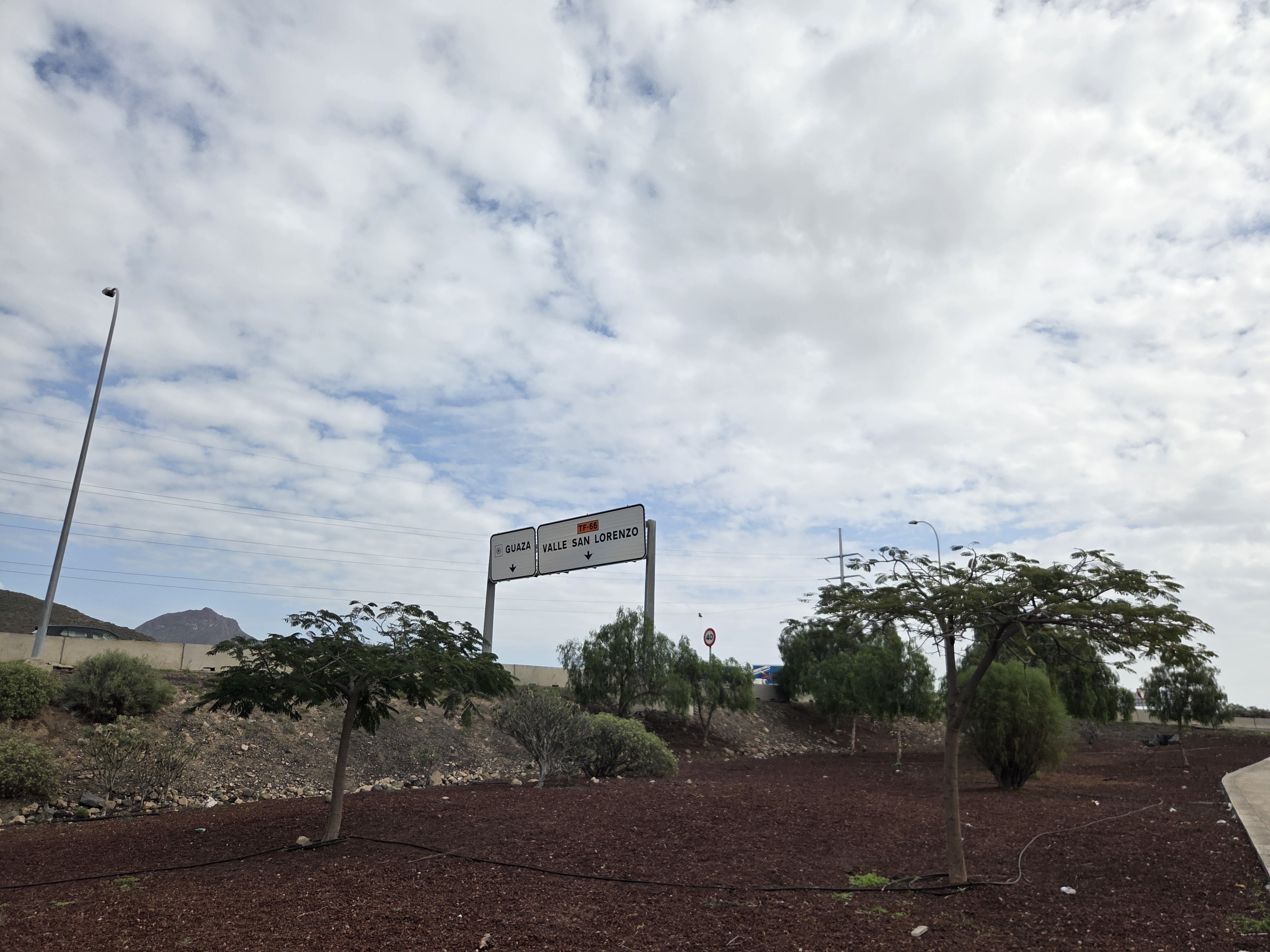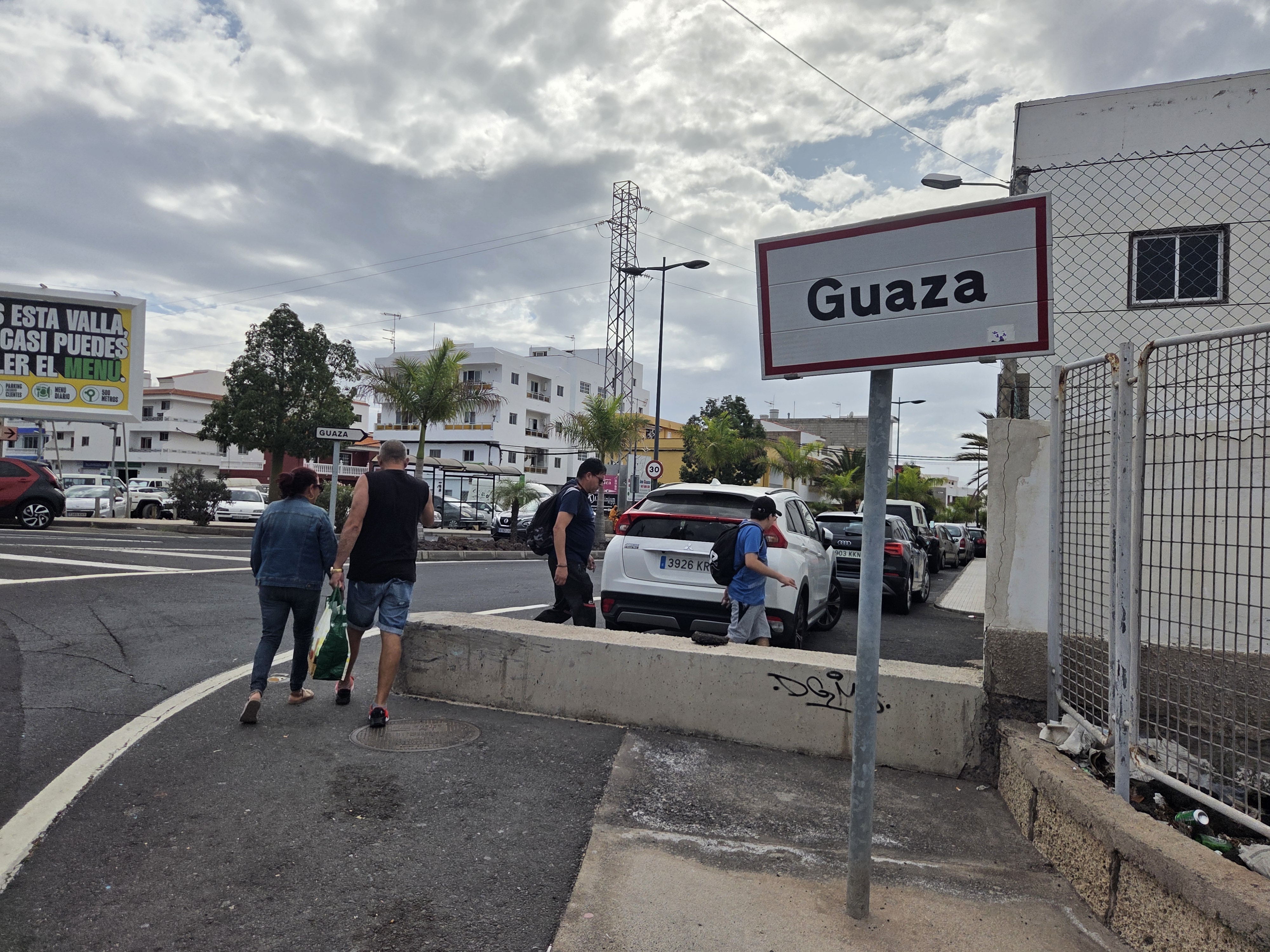 Un autre panneau, situé un peu plus loin, signale la bifurcation entre Guaza et Valle San Lorenzo, deux zones résidentielles bien connues du sud de Tenerife. Ce croisement est un repère pratique pour les voyageurs qui circulent entre la côte et l’intérieur de l’île.