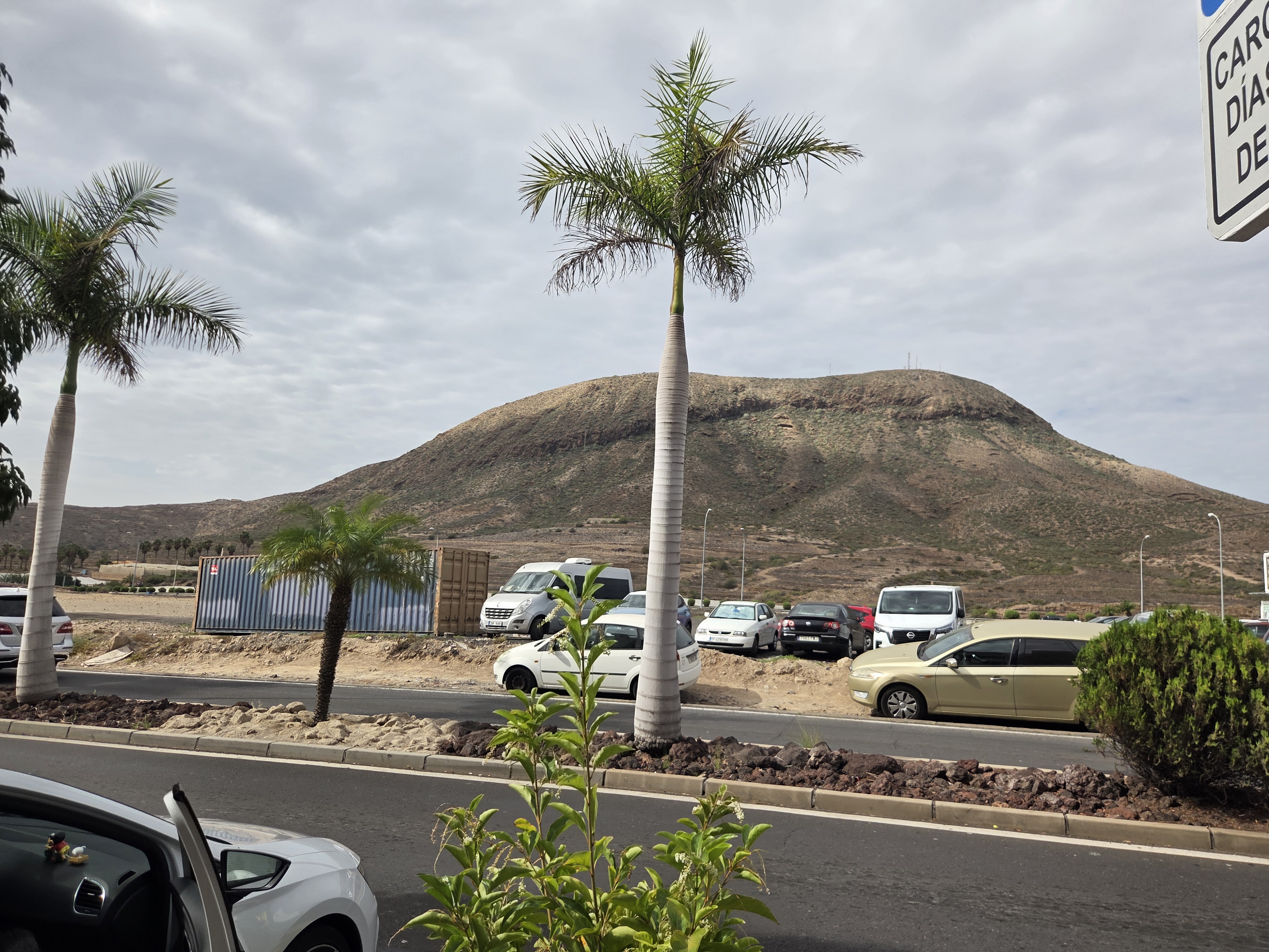 En arrivant à Guaza, on est immédiatement frappé par le paysage volcanique typique du sud de l’île. La grande montagne qui domine la zone rappelle que l’on se trouve sur un territoire façonné par les éruptions, avec des pentes arides, des pistes de terre et des rangées de palmiers plantés le long de la route.