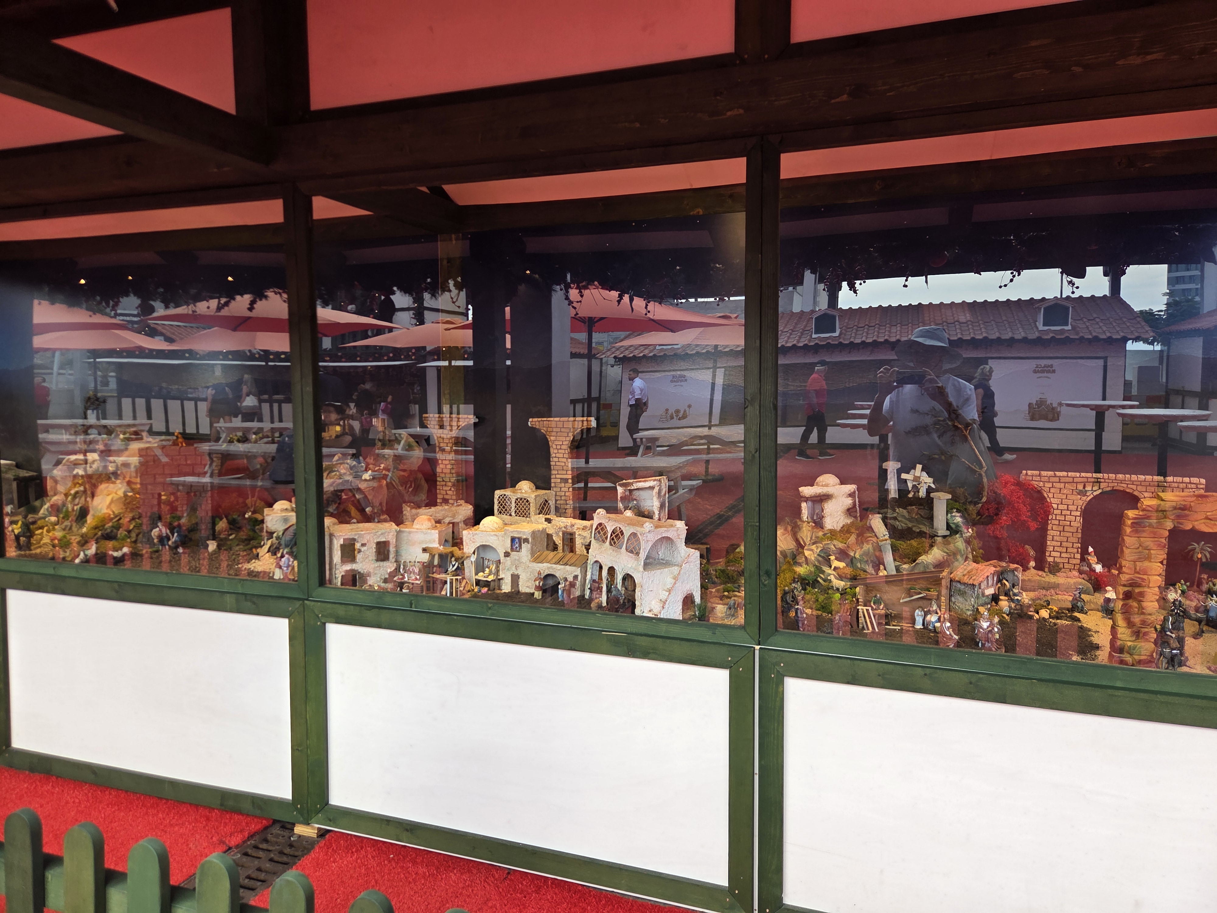 Pour les amateurs de traditions, une vitrine abrite une crèche de Noël spectaculaire. On y voit des maisons miniatures, des ponts, des personnages en mouvement et de petites scènes de la vie quotidienne. Cette crèche détaillée attire autant les enfants que les adultes et rappelle l’importance des traditions de Noël en Espagne, où l’on accorde une place particulière aux belenes, les crèches artisanales.